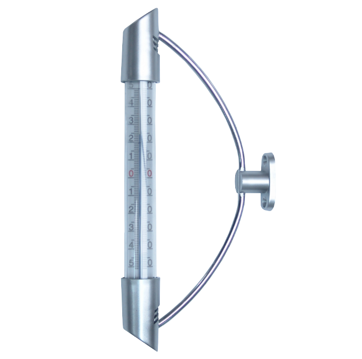 Un termometru exterior cu suport semicerc este un dispozitiv care masoara temperatura aerului din exterior. Acesta este atasat la o suprafata verticala, cum ar fi un perete sau o usa, folosind un suport semicerc cu 2 suruburi. Specificatii: Suportul din semicerc este fabricat din fier. Tubul este confectionat din sticla foarte rezistenta. Alcoolul din tub se dilata si afiseaza valoarea temperaturii.